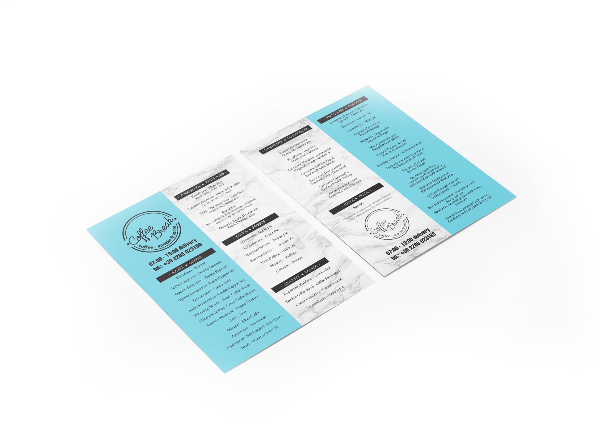 Logo, Packaging, Flyer, Menu.